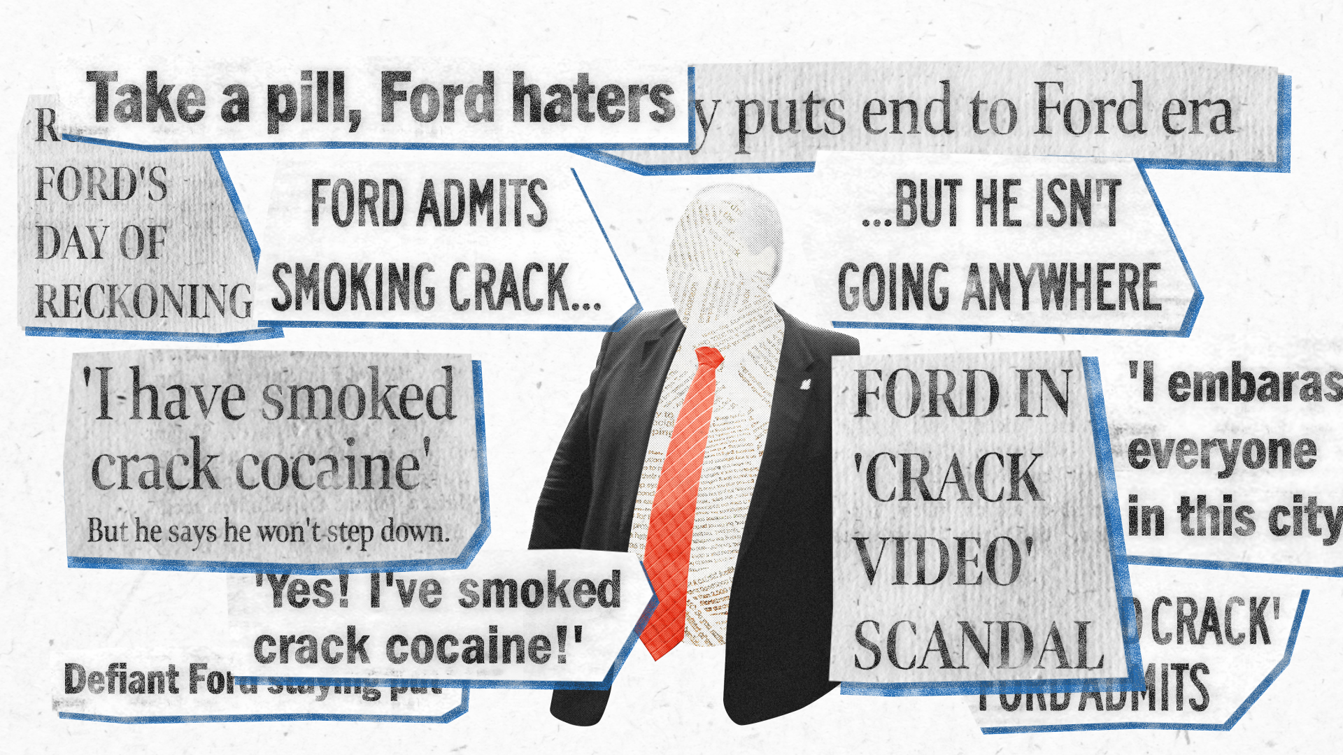 To capture the media frenzy surrounding the mayor’s scandals, I incorporated newsprint and tabloid-inspired layouts filled with bold, shocking headlines, echoing the sensational coverage that defined his public image.